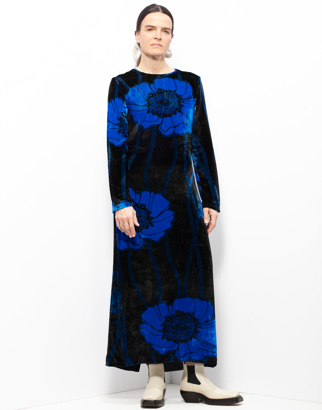Very beautiful and chic long dress by Nina Ricci. It features fitted long sleeves and a fluid straight shape.