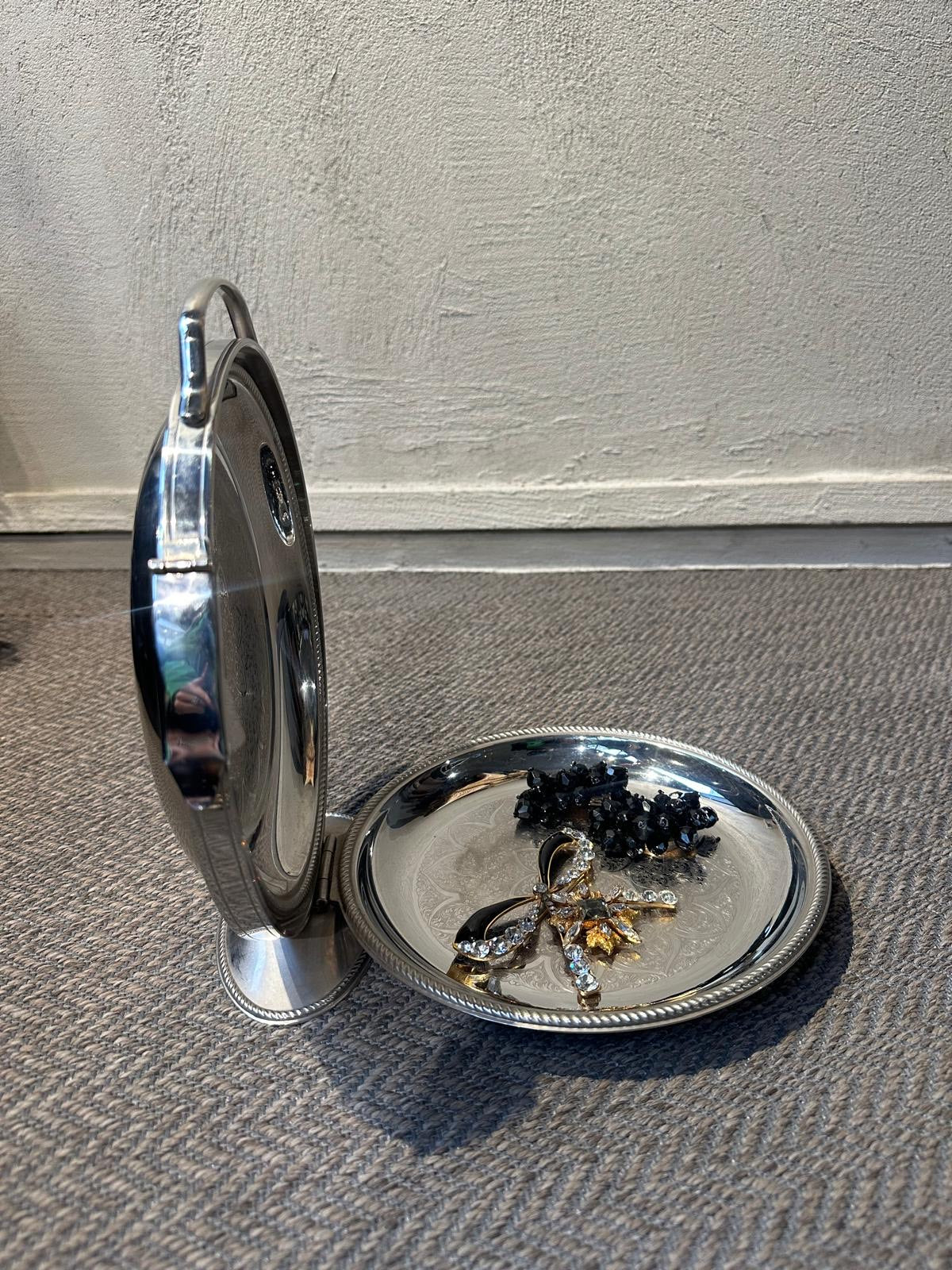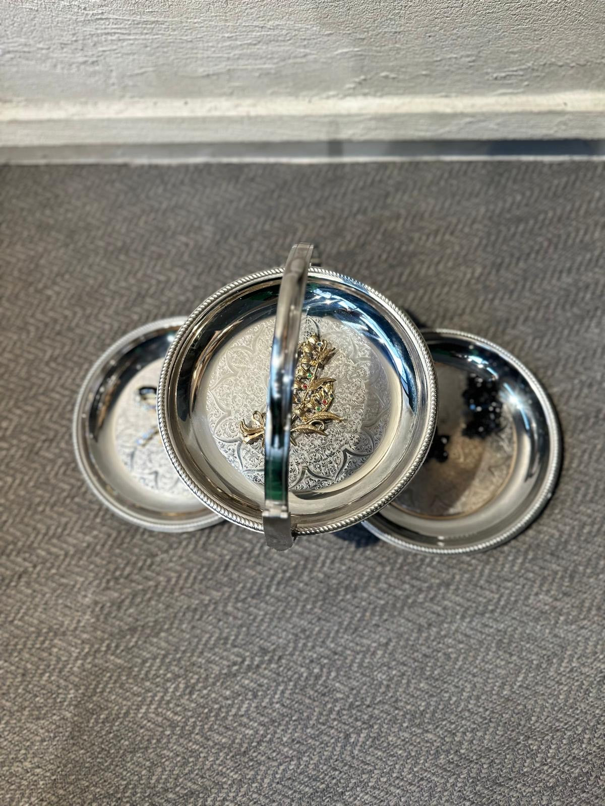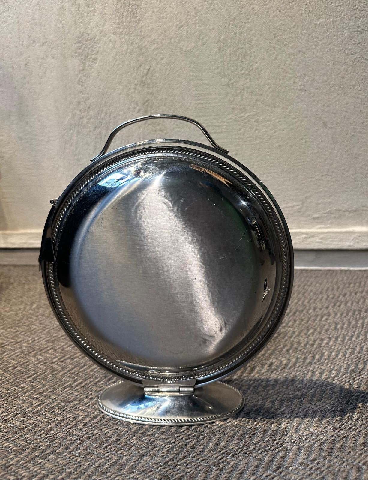 Beautiful and classic Alessi cake / tiered stand in steel. When open, it unfolds into three beautiful plates. It also features some lovely steel pattern and detailing. A home decor designer piece that will make your table look beautiful.