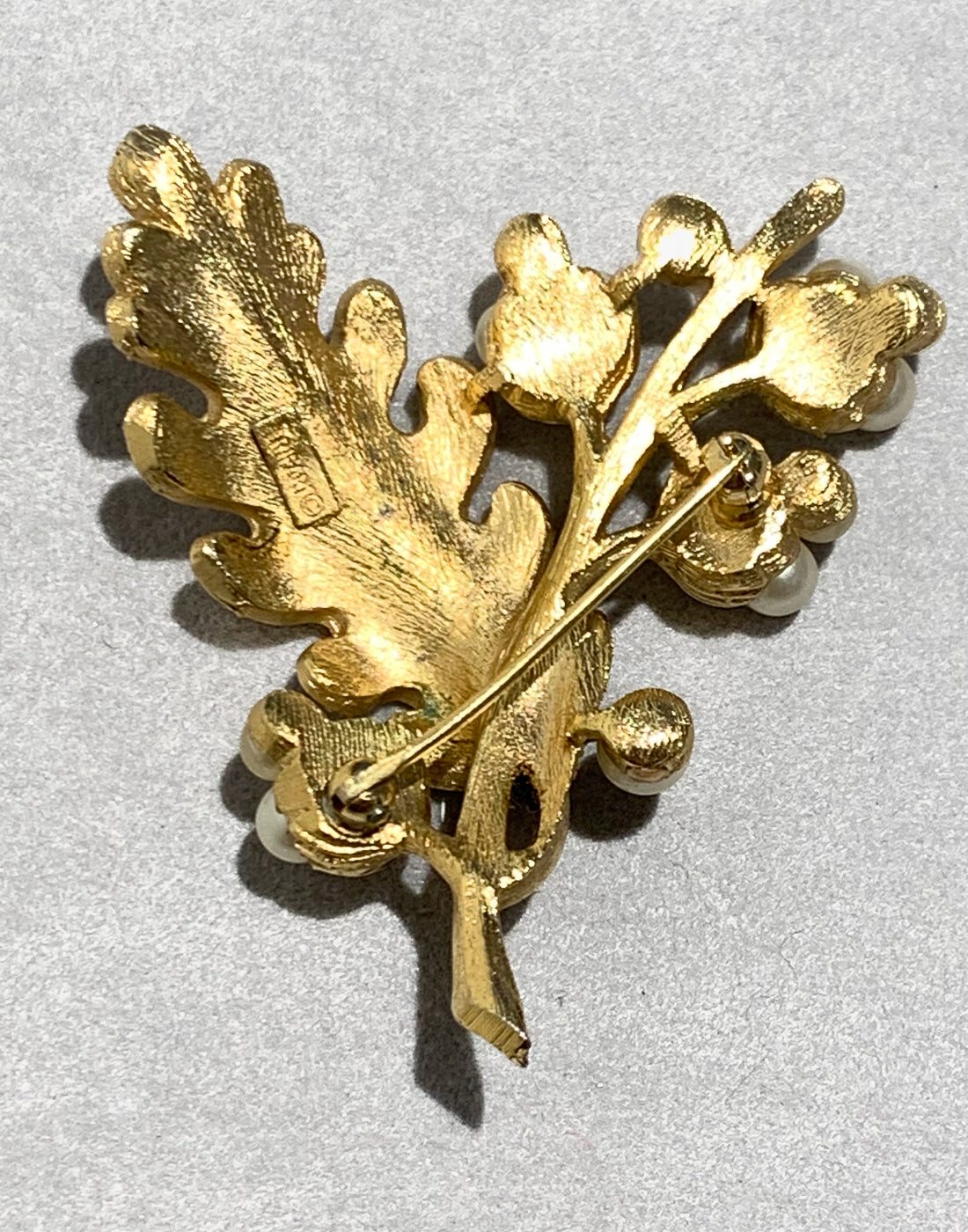 Very elegant and beautiful 1960's flower branch brooch designed by Trifary, Krussman & Fishel (USA). Gilded metal and simulated pearls. It's a gorgeous and timeless piece that will add a unique touch to your look.