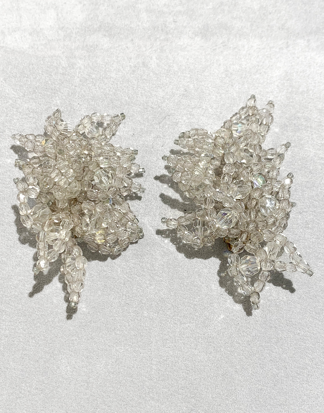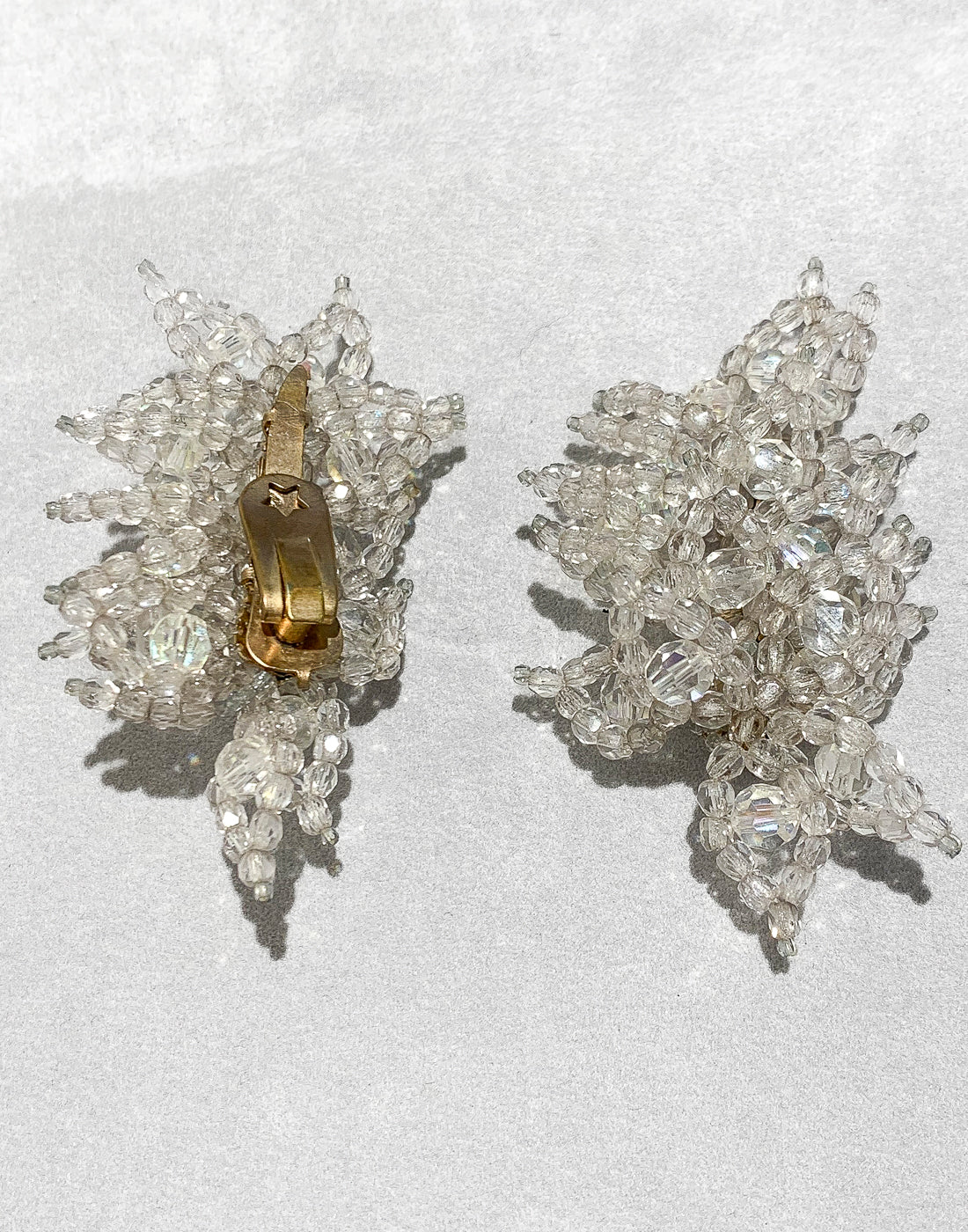 These are a beautiful pair of 1960's clip-on earrings designed by Coppola & Toppo. Transparent lustered glass beads and gilded metal clips. Made in Italy.