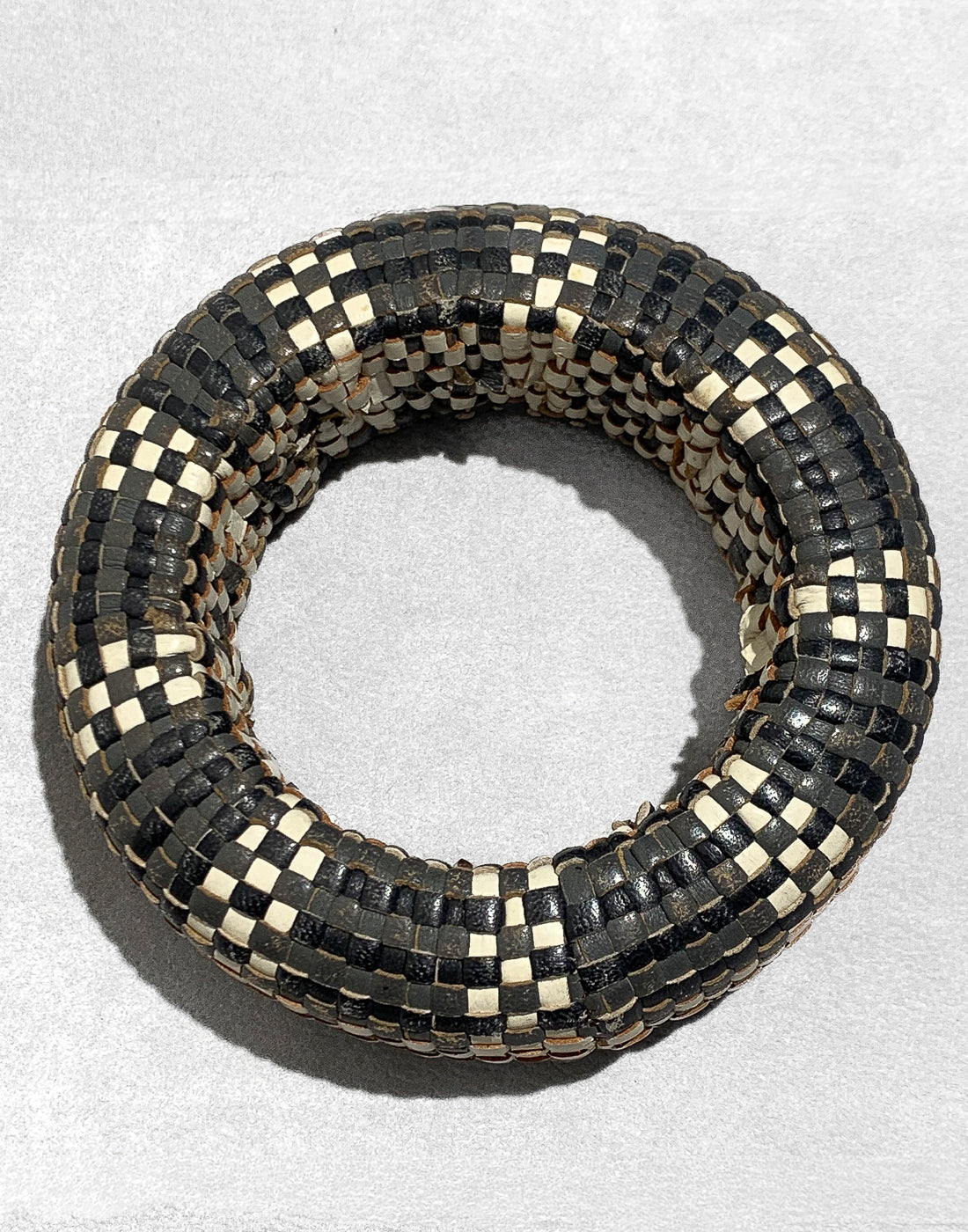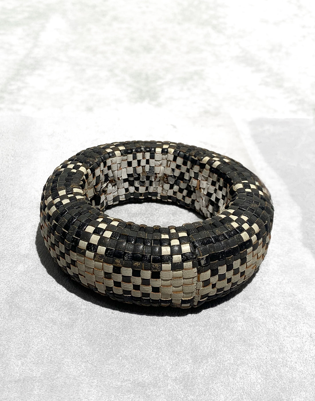 Unique braided leather bracelet attributed to Valentino - made by Ugo Correani - in 1980. Made in wood and covered in woven leather cord, made in Italy.