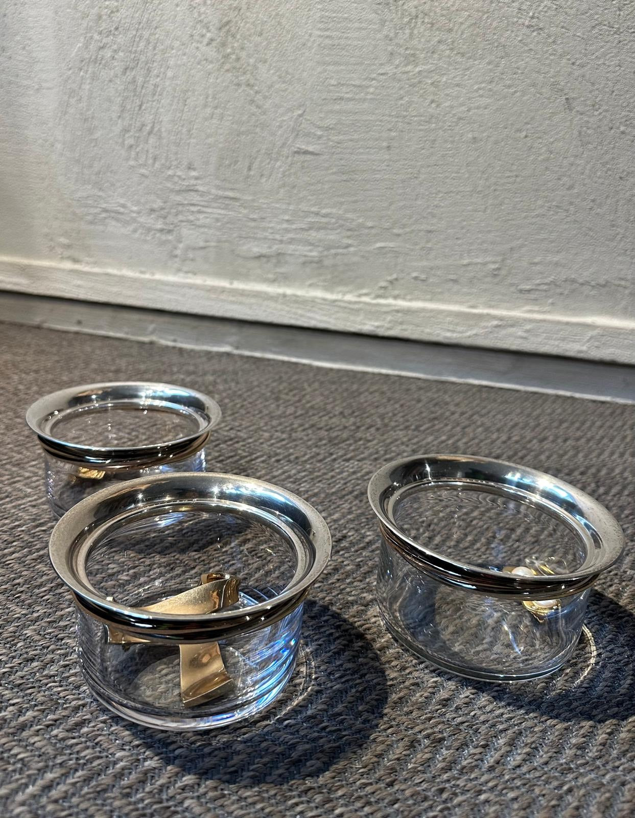 Really beautiful and classic Cartier small jars in silver and crystal. They also come with their original Cartier red box.