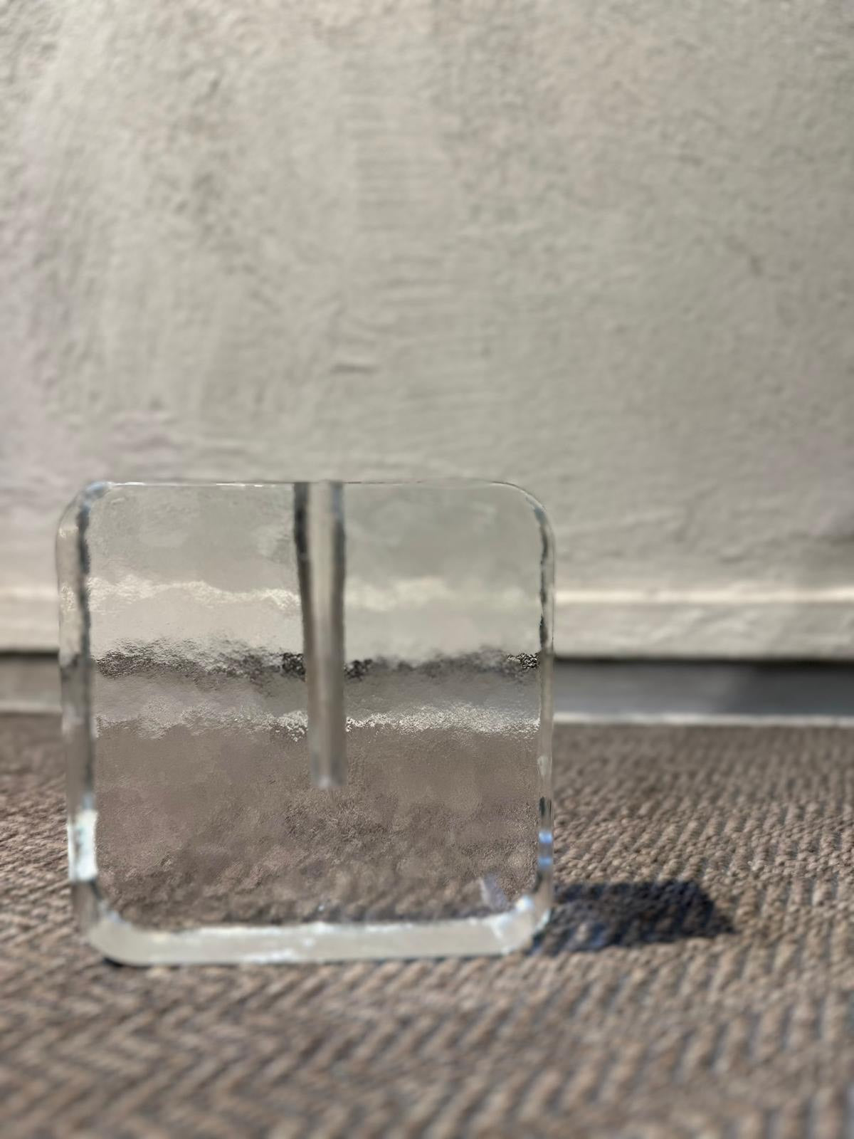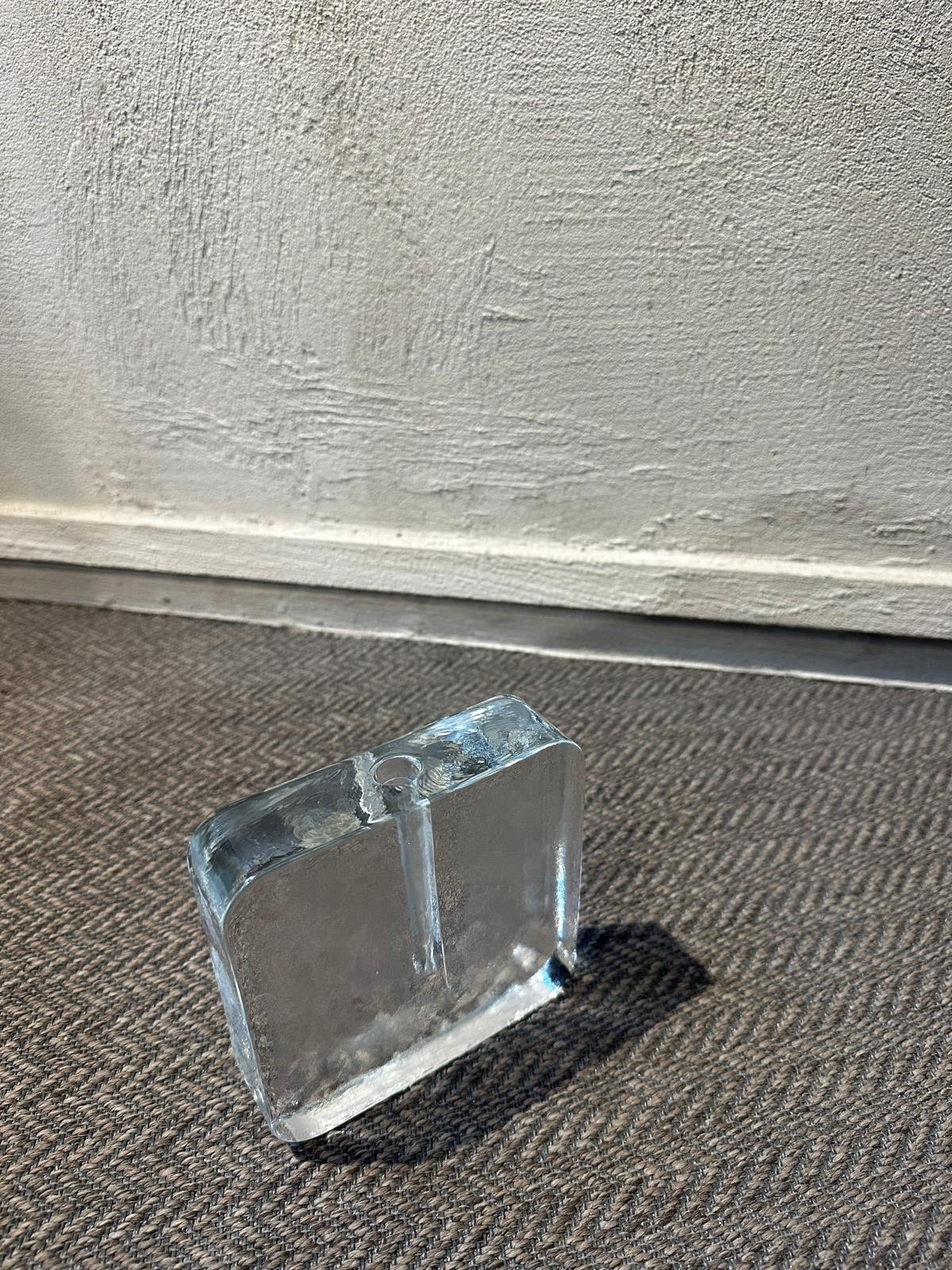 Beautiful Murano flower clear vase in squared shape by Barbini.