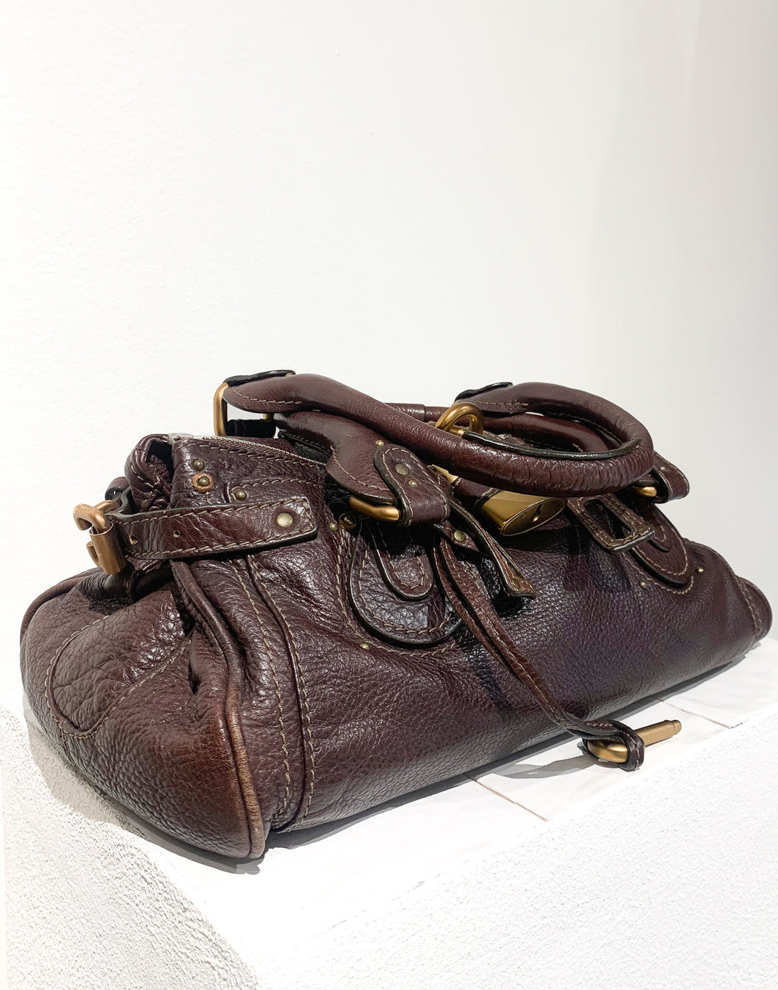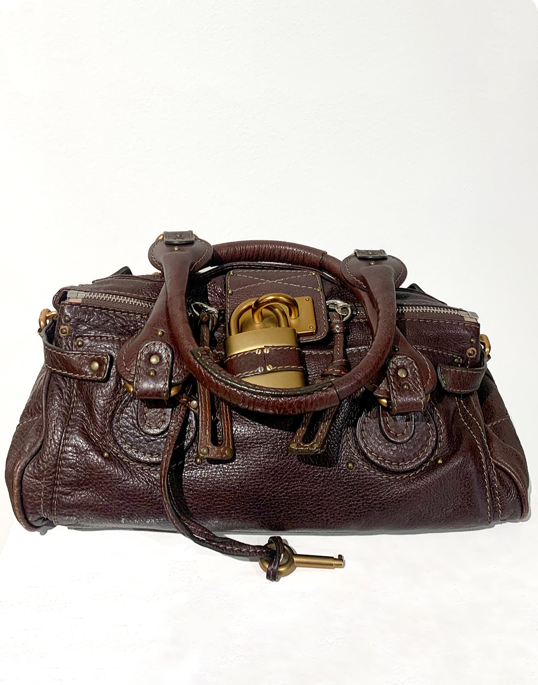 This is the original and iconic Paddington bag by Chloe' - the must-have accessory from the early 2000's. It's in a gorgeous and soft leather, in a deep dark brown colour - and it features a statement log and key. It's a timeless and iconic piece - the perfect everyday bag.