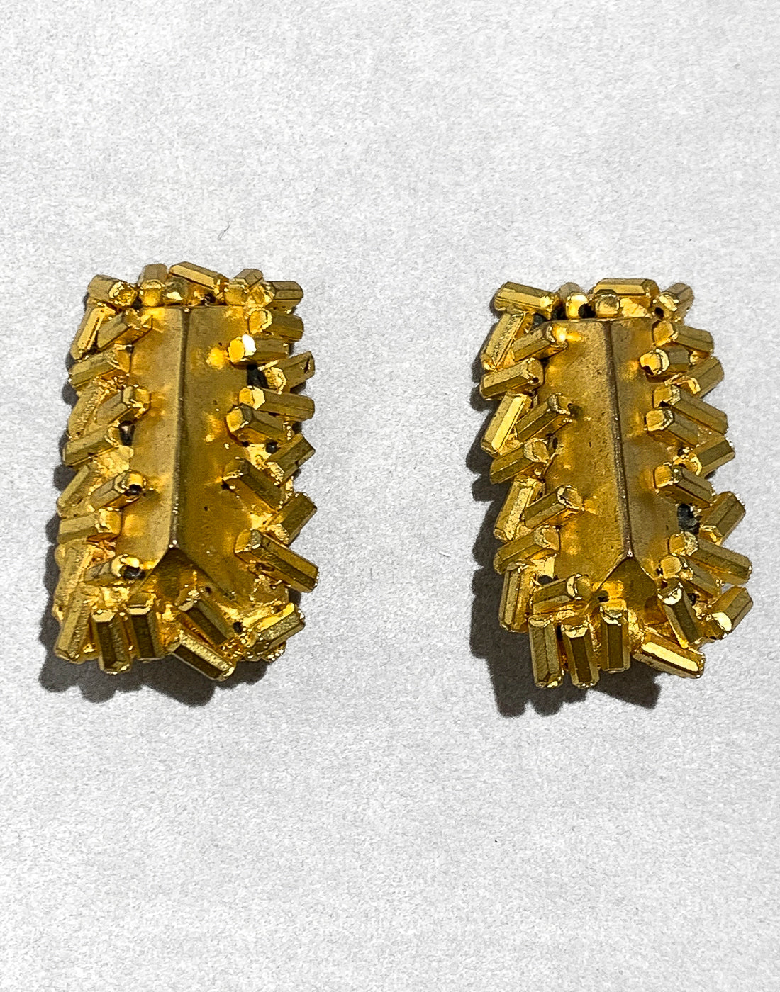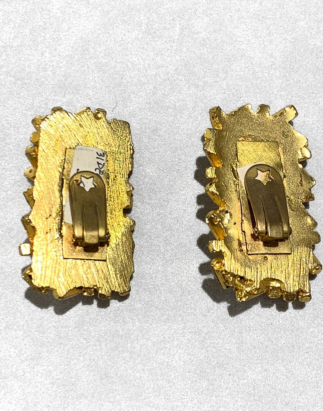 Beautiful statement pair of rectangular earrings in gilded resin designed by Coppola & Toppo for Valentino in 1969.