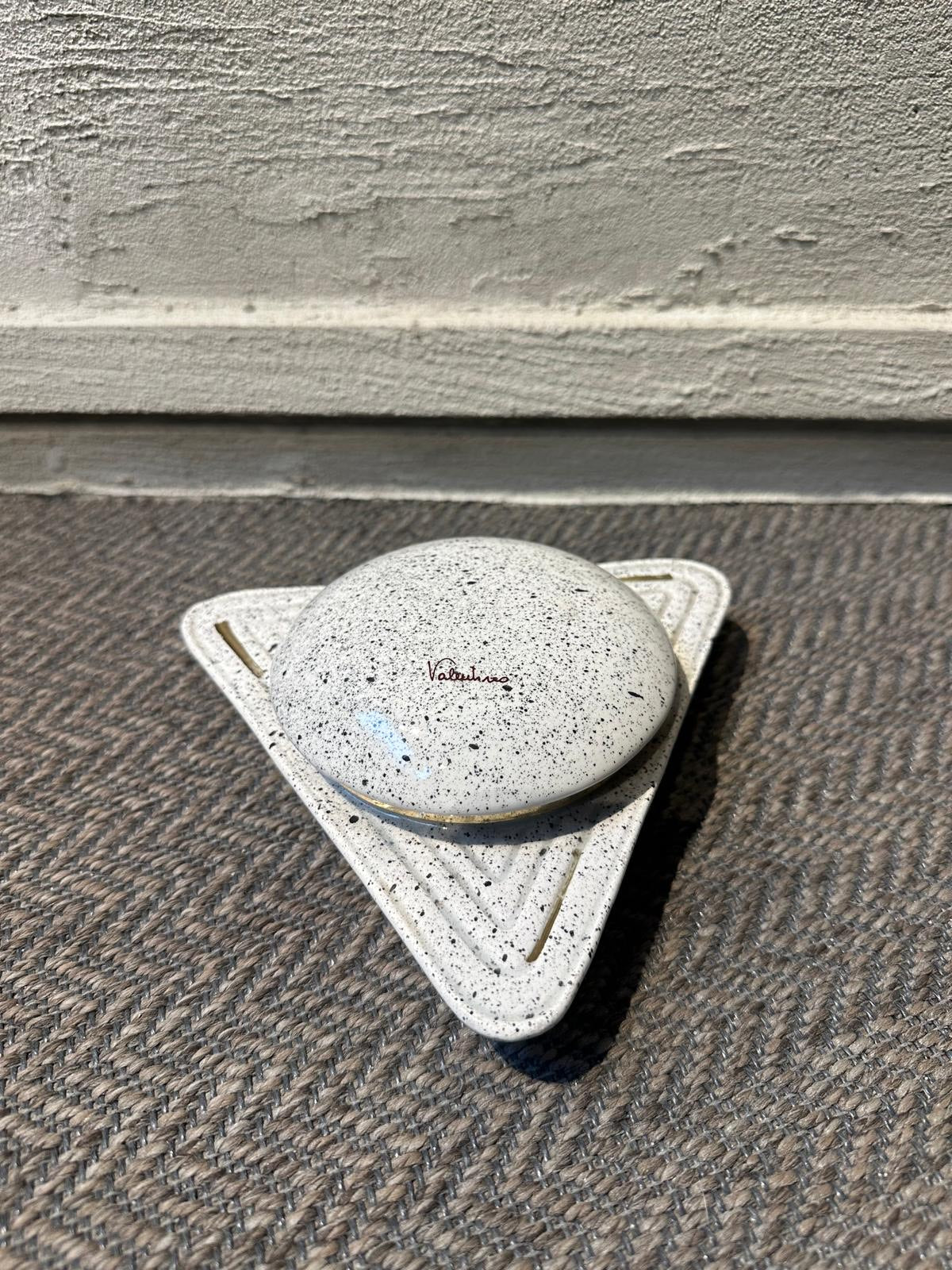 This is a beautiful and interesting shaped case holder by Valentino. It's an elegant and timeless home decor piece.